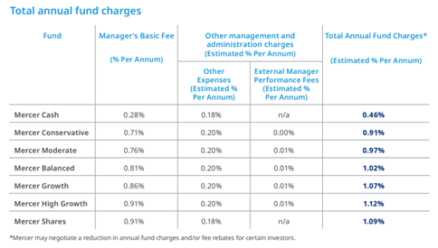 You can find out more about Mercer’s seven investment options . You can review and switch between funds anytime without any charges.